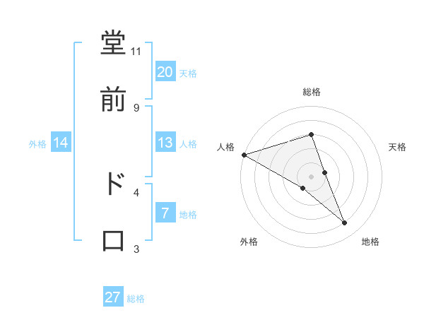 堂前 ド口さんを姓名の画数から五運を鑑定