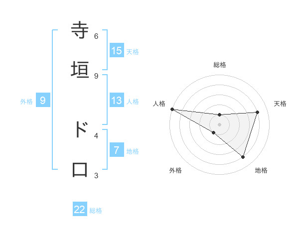 寺垣 ド口さんの総格は22画の1点!