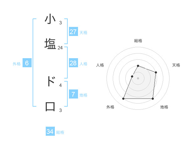 小塩 ド口さんを姓名の画数から五運を鑑定