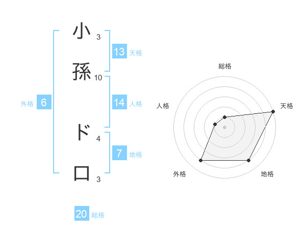 小孫 ド口さんの総格は20画の1点!
