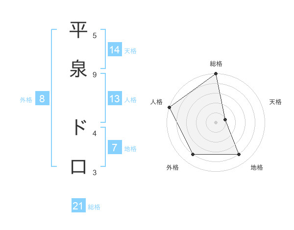 平泉 ド口さんを姓名の画数から五運を鑑定