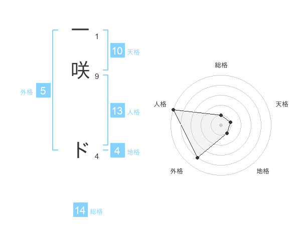 一咲 ドさんの総格は14画の1点!