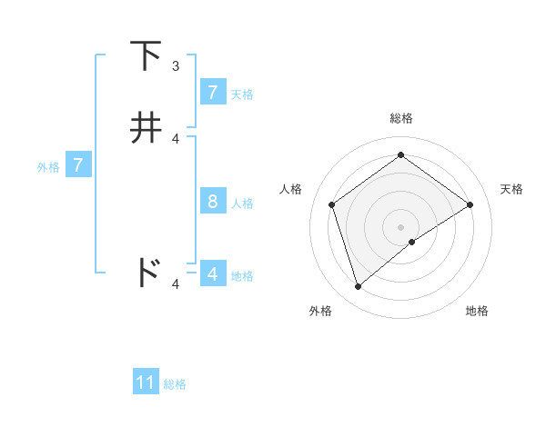 下井 ドさんの総格は11画の4点!
