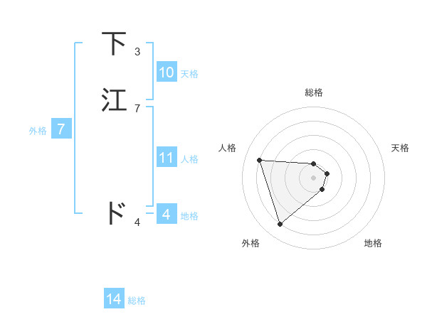 下江 ドさんの総格は14画の1点!