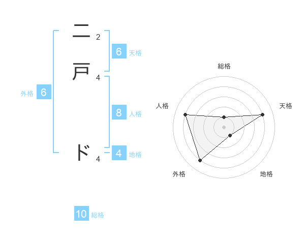 二戸 ドさんの天格は6画の4点!