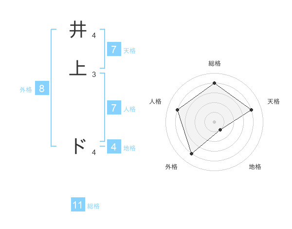 井上 ドさんの総格は11画の4点!