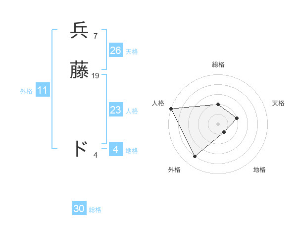 兵藤 ドさんを姓名の画数から五運を鑑定