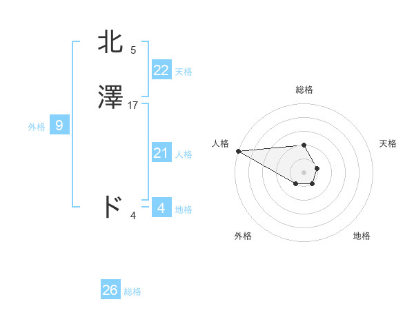 北澤 ドさんの総格は26画の2点!