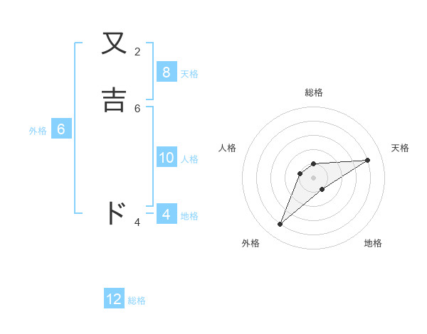 又吉 ドさんの天格は8画の4点!