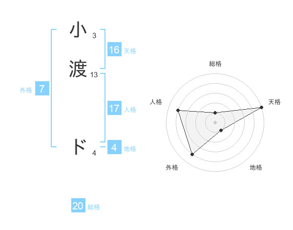 小渡 ドさんの総格は20画の1点!