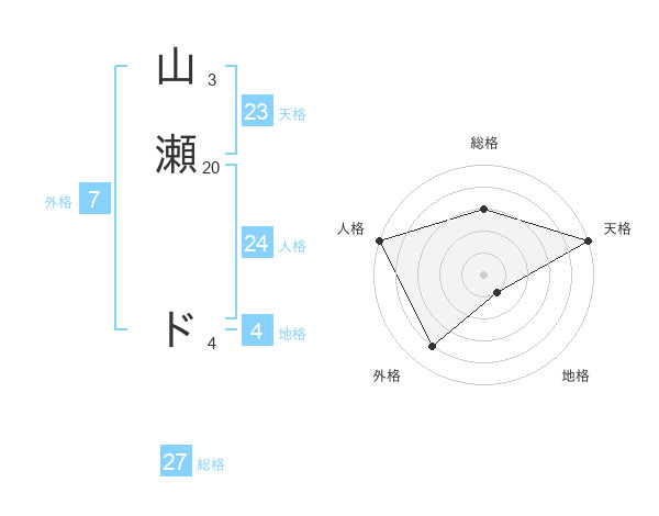 山瀬 ドさんを姓名の画数から五運を鑑定