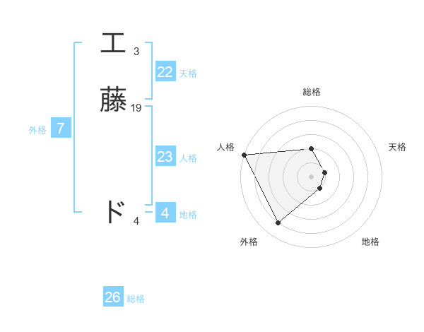 工藤 ドさんの外格は7画の4点!