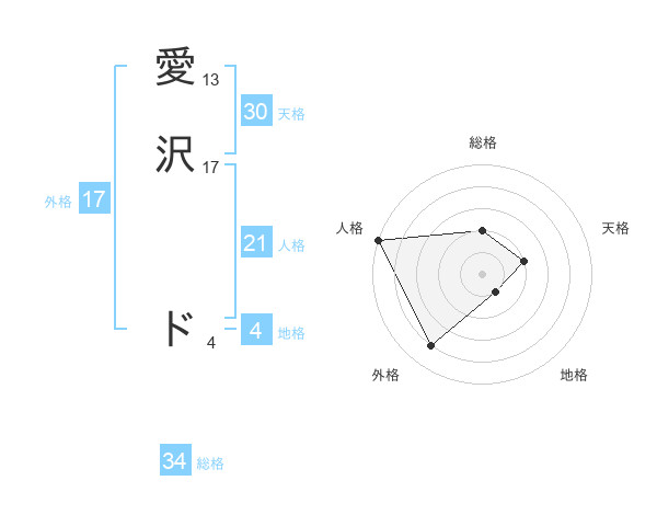 愛沢 ドさんを姓名の画数から五運を鑑定