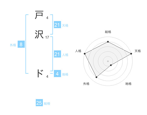 戸沢 ドさんを姓名の画数から五運を鑑定