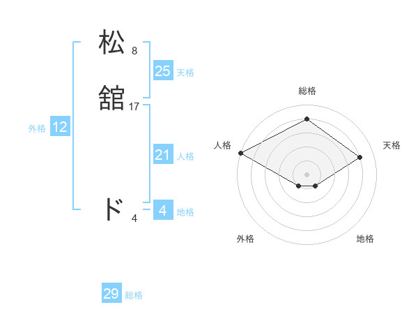 松舘 ドさんの総格は29画の4点!