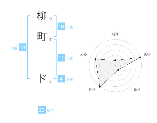 柳町 ドさんの総格は20画の1点!