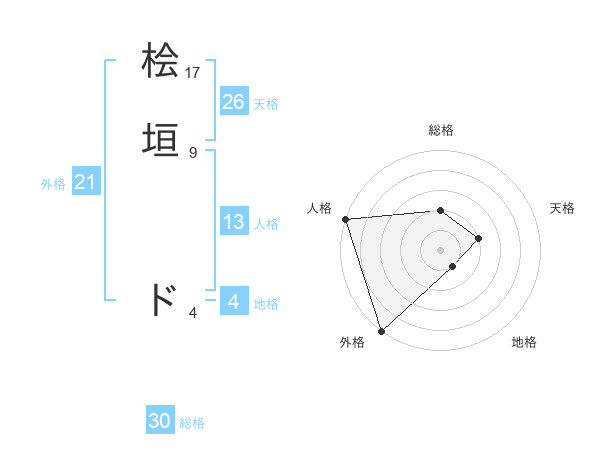 桧垣 ドさんの外格は21画の5点!