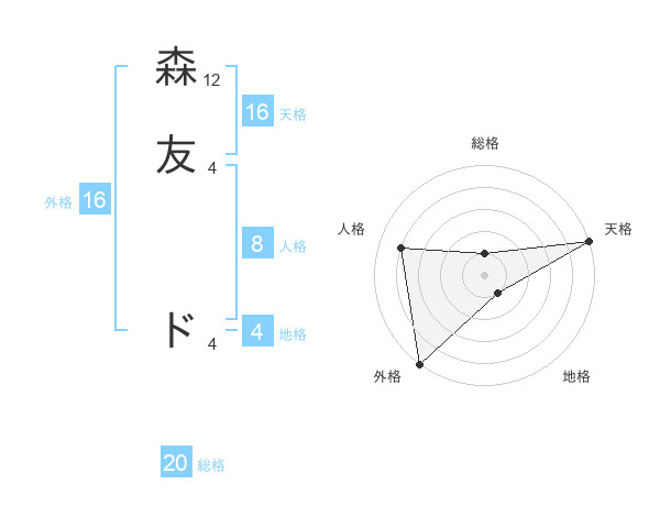 森友 ドさんの総格は20画の1点!