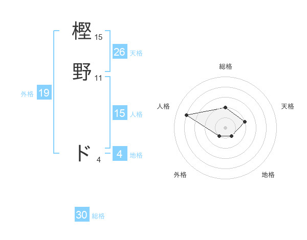 樫野 ドさんの総格は30画の2点!