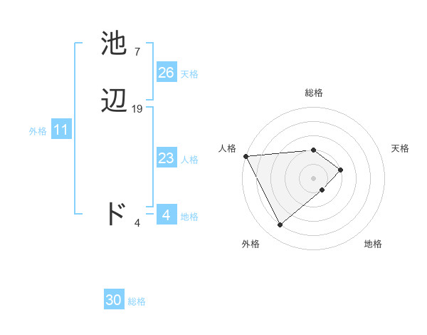 池辺 ドさんの地格は4画の1点!