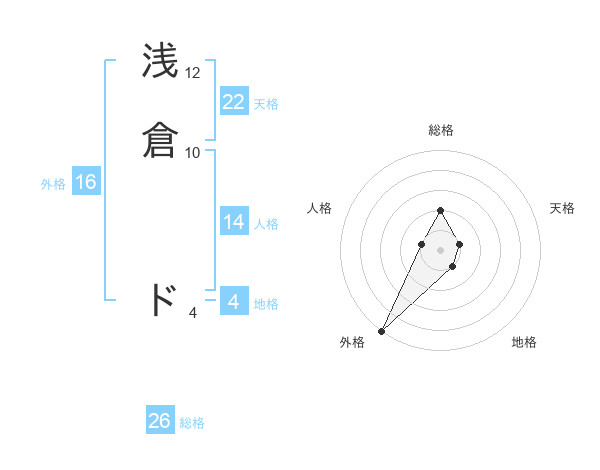 浅倉 ドさんを姓名の画数から五運を鑑定