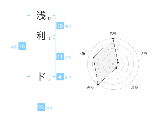 浅利 ドさんの外格は16画の5点!