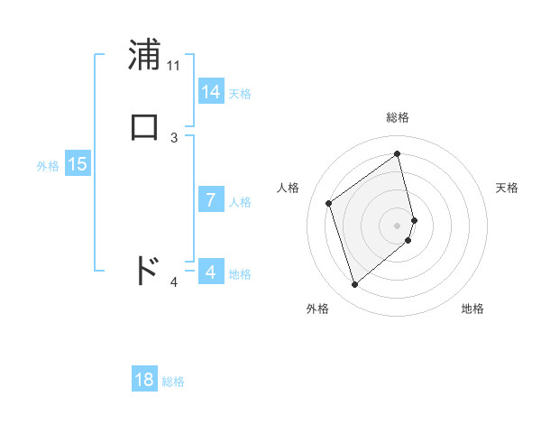 浦口 ドさんの天格は14画の1点!