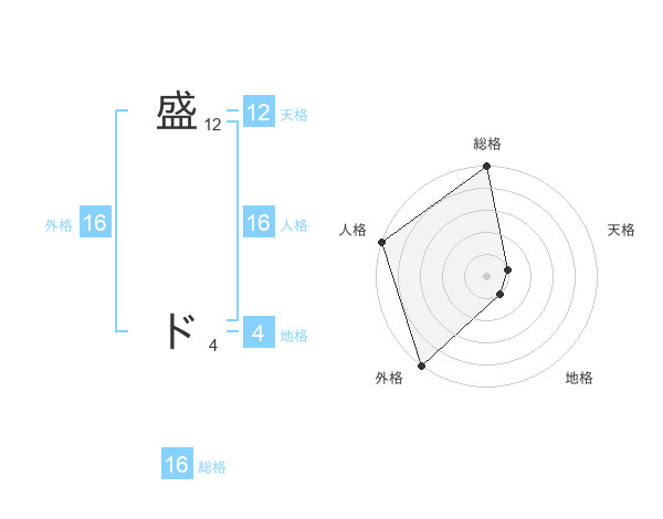 盛 ドさんの総格は16画の5点!