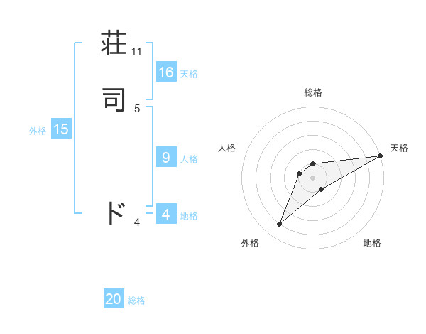 荘司 ドさんの総格は20画の1点!
