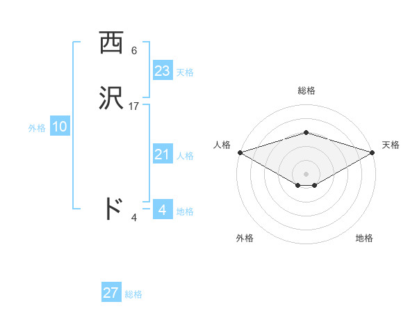 西沢 ドさんの総格は27画の3点!