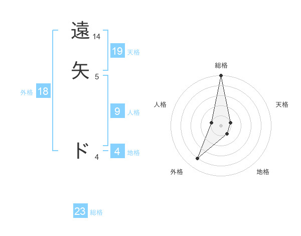 遠矢 ドさんの総格は23画の5点!