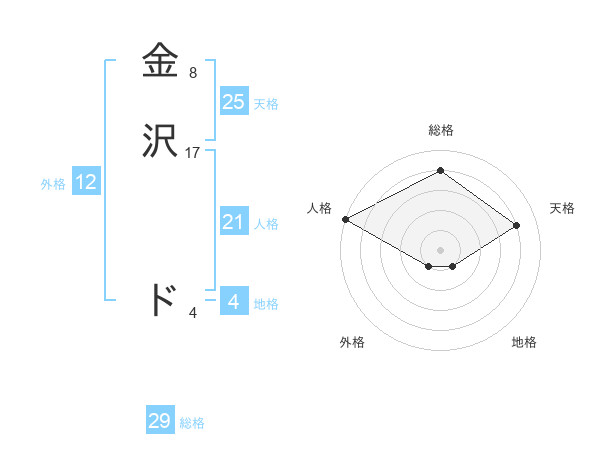 金沢 ドさんの総格は29画の4点!