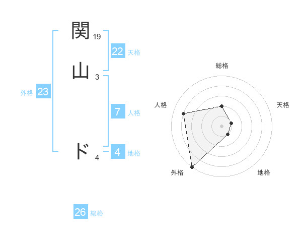 関山 ドさんの総格は26画の2点!