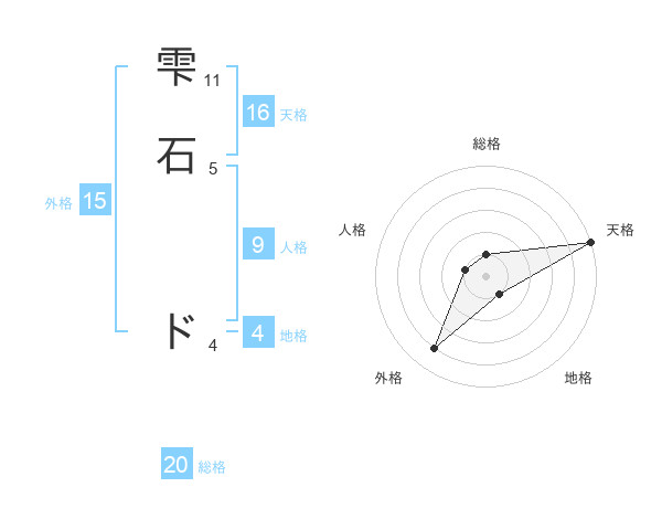 雫石 ドさんの総格は20画の1点!