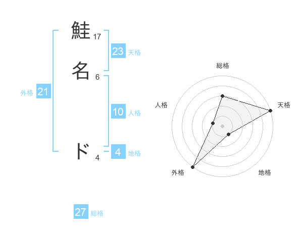 鮭名 ドさんを姓名の画数から五運を鑑定