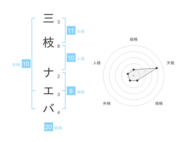三枝 ナエバさんを姓名の画数から五運を鑑定