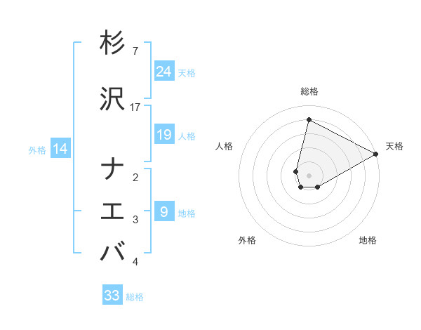 杉沢 ナエバさんを姓名の画数から五運を鑑定