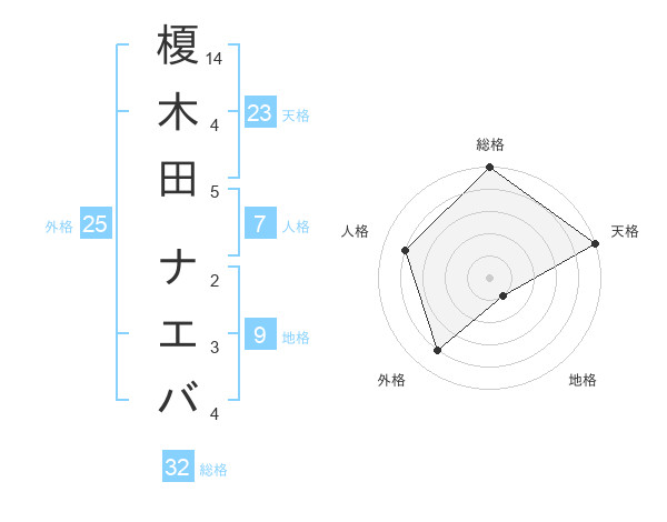 榎木田 ナエバさんの天格は23画の5点!