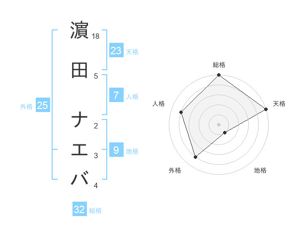 濵田 ナエバさんの総格は32画の5点!