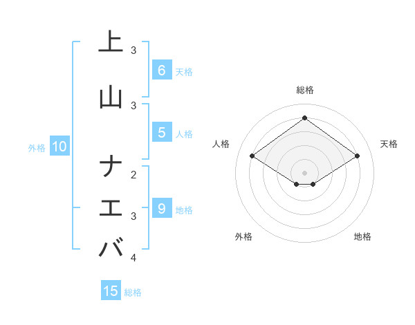 上山 ナエバさんを姓名の画数から五運を鑑定