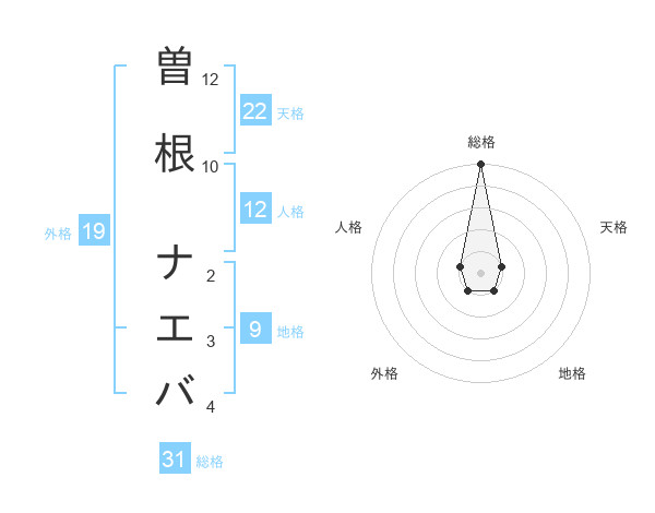 曽根 ナエバさんを姓名の画数から五運を鑑定