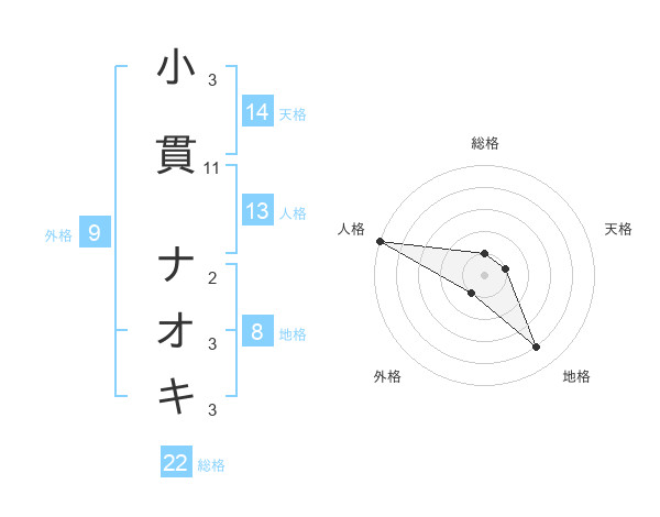 小貫 ナオキさんを姓名の画数から五運を鑑定