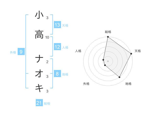 小高 ナオキさんの総格は21画の5点!