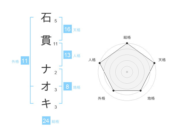 石貫 ナオキさんを姓名の画数から五運を鑑定