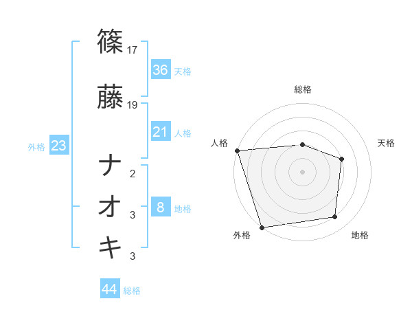 篠藤 ナオキさんを姓名の画数から五運を鑑定