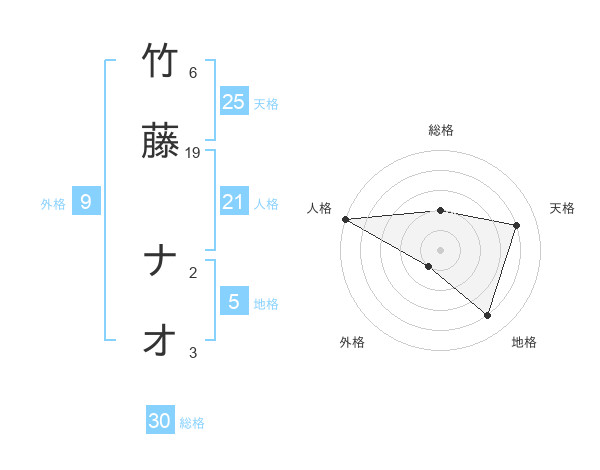 竹藤 ナオさんを姓名の画数から五運を鑑定