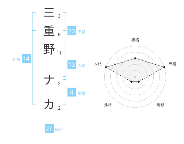 三重野 ナカさんを姓名の画数から五運を鑑定