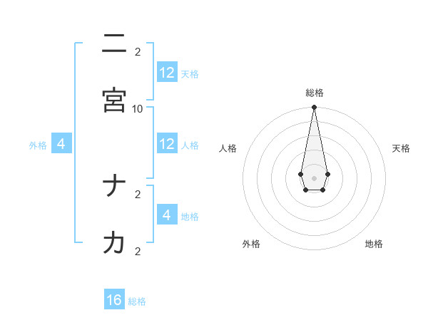 二宮 ナカさんの天格は12画の1点!