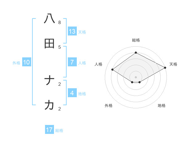 八田 ナカさんの総格は17画の4点!