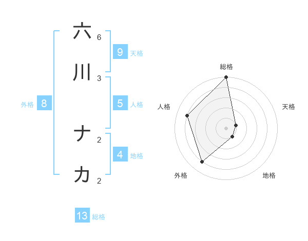 六川 ナカさんの総格は13画の5点!